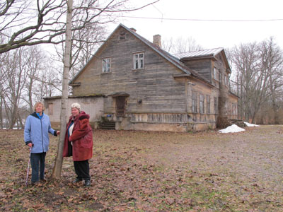 Kvistental utanför Tartu där Siiri och Tiius morfar hade en läderfabrik. Här är de tillsammans med den nye ägaren av huset. |