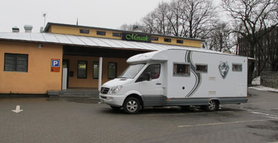 "Herrgården i Kriimani". I Tartu stod vi också på en parkering centralt i stan. Här var nackdelen att intilliggande nattklubben slutade kl 02 och det var livligt bland de som väntade på bussen hem. |