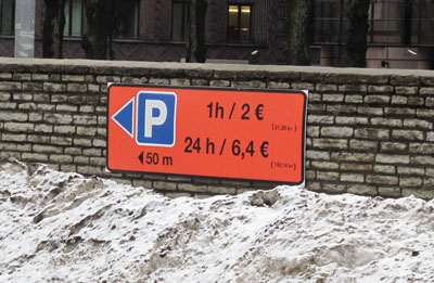 Mitt i Tallin hittade vi denna parkeringsplats utanför en bra restaurang! |